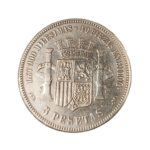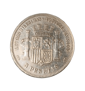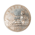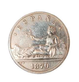 Moneda de plata de 5 pesetas de 1870, *SNM, con un peso de 23.16 gramos.