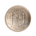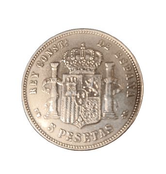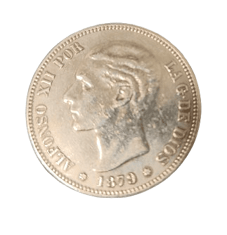 Moneda de plata de 5 pesetas de Alfonso XII de 1879, *EMM, con un peso de 23.30 gramos.