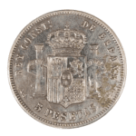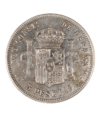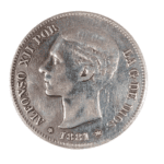 Moneda de plata de 5 pesetas de Alfonso XII de 1881, *MSM, con un peso de 23.73 gramos.