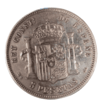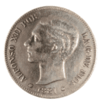 Moneda de plata de 5 pesetas de Alfonso XII de 1881, *MSM, con un peso de 23.81 gramos.