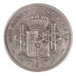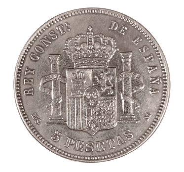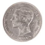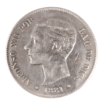 Moneda de plata de 5 pesetas de Alfonso XII de 1881, * MSM, con un peso de 23.39 gramos.