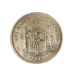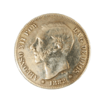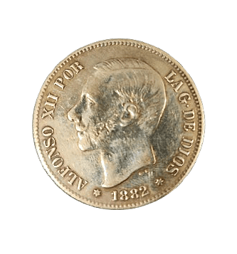 Moneda de plata de 5 pesetas de Alfonso XII de 1882, *MSM, con un peso de 23.55 gramos.