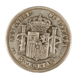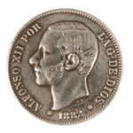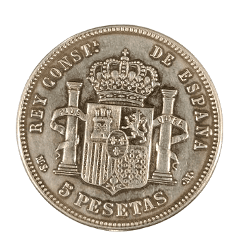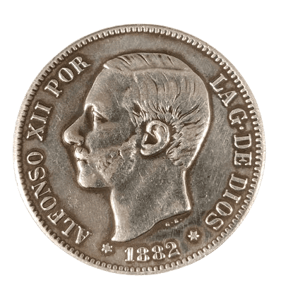 Moneda de plata de 5 pesetas de Alfonso XII de 1882, *18/81 MSM, con un peso de 23.29 gramos.