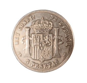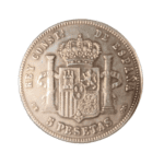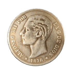 Moneda de plata de 5 pesetas de Alfonso XII de 1878, *DEM, con un peso de 23.96 gramos.