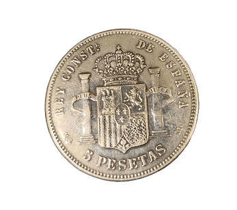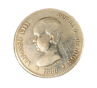 Moneda de plata de 5 pesetas de Alfonso XII de 1888, *MSM, con un peso de 23.20 gramos.