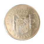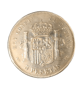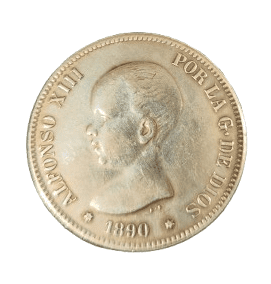 Moneda de plata de 5 pesetas de Alfonso XIII de 1890, *MPM, con un peso de 23.27 gramos.