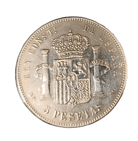 Moneda de plata de 5 pesetas de Alfonso XIII de 1890, *MPM, con un peso de 23.87 gramos.