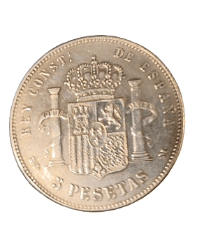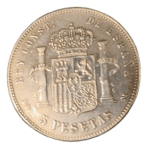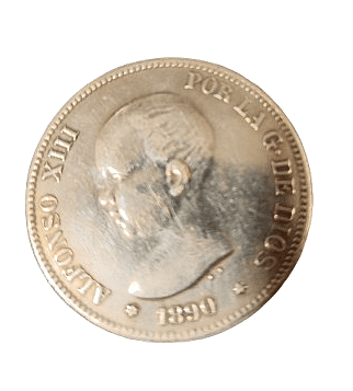 Moneda de plata de 5 pesetas de Alfonso XIII de 1890, *MPM, con un peso de 23.12 gramos.
