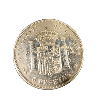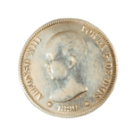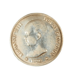 Moneda de plata de 5 pesetas de Alfonso XIII de 1890, *MPM, con un peso de 23.63 gramos.