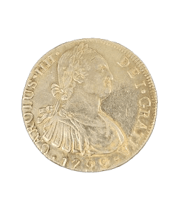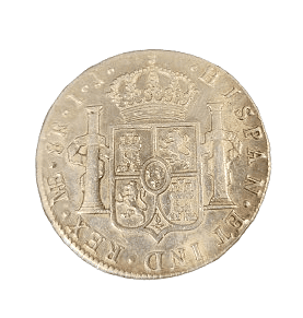 Moneda de plata de 8 reales de Carlos III de 1799, * IJ, con un peso de 26.66 gramos.