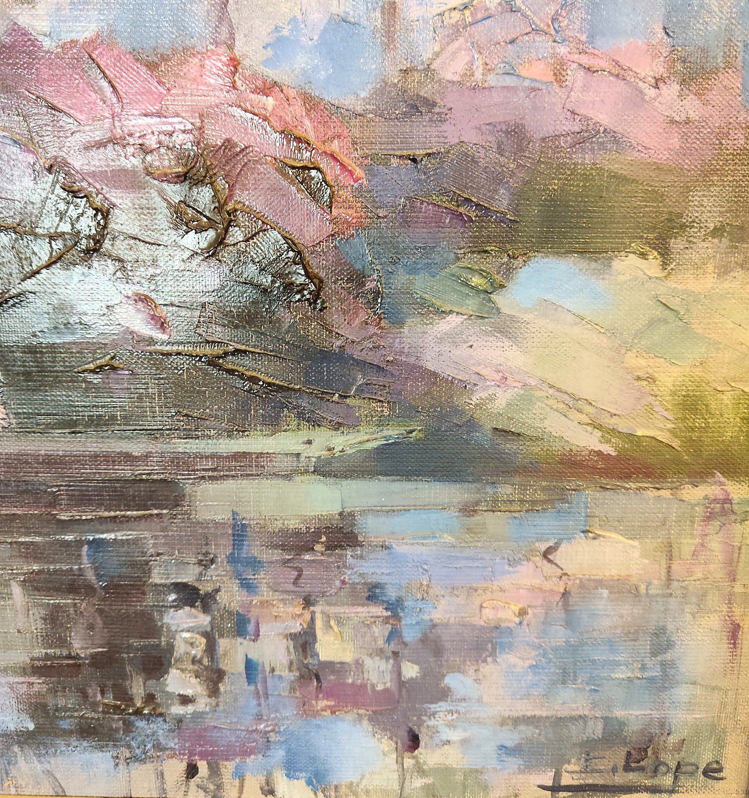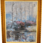 Óleo sobre lienzo que representa las orillas de río Zadorra, realizado por Emilio Lope Vallejo (1936-2009).