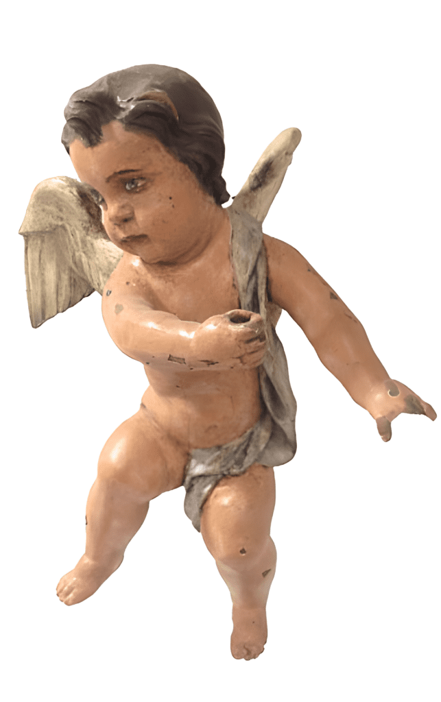 Escultura de un ángel en madera policromada del siglo XVIII de la escuela española.