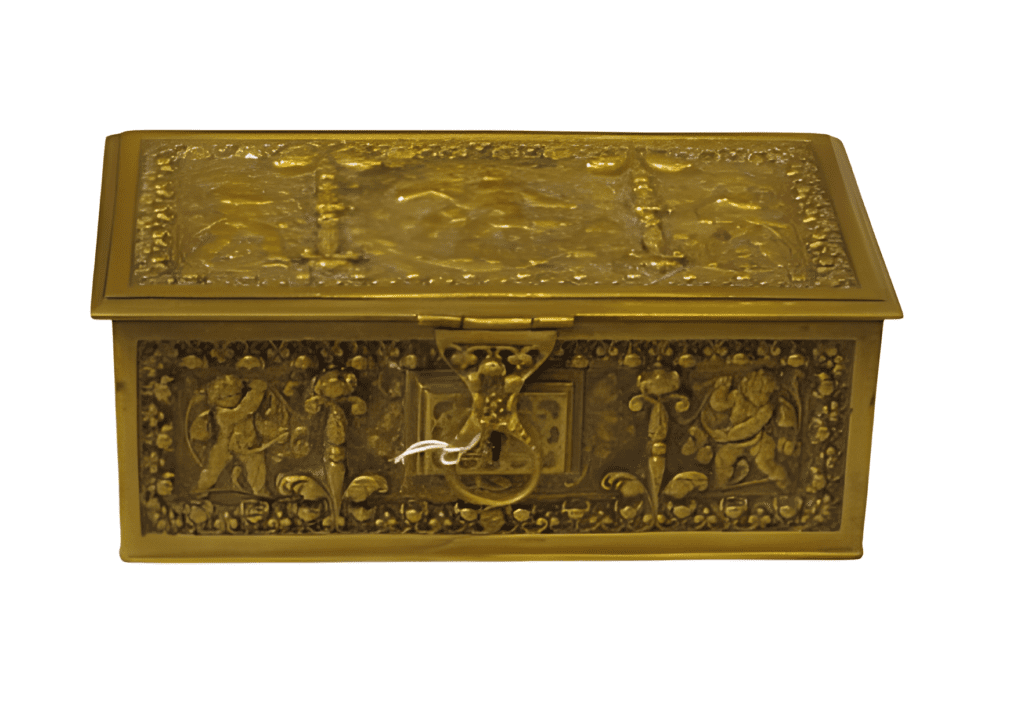 Caja de bronce que representa temas mitológicos del siglo XIX.