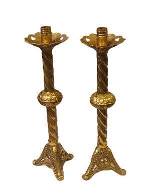 Pareja de candeleros de bronce, de finales del siglo XIX y principios del siglo XX.