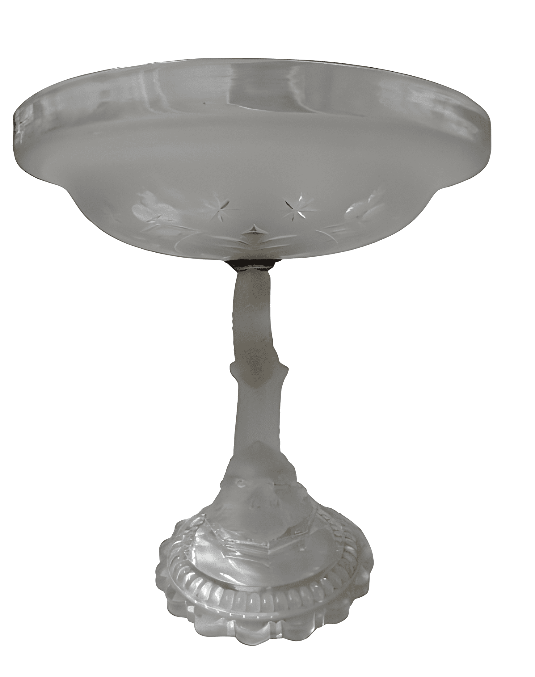 Centro de cristal de Murano, probablemente de principios del siglo XX, con un pie en forma de delfín.