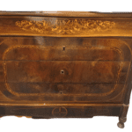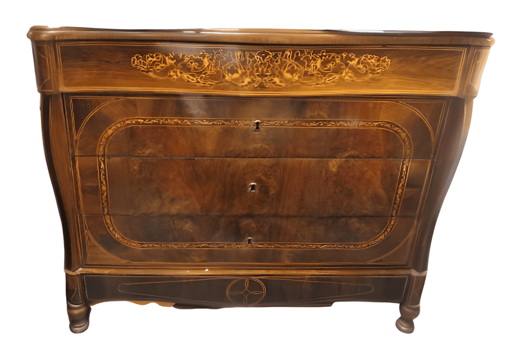 Cómoda de caoba con marquetería de limoncillo, con 5 cajones, del siglo XIX Isabelina.