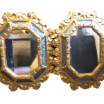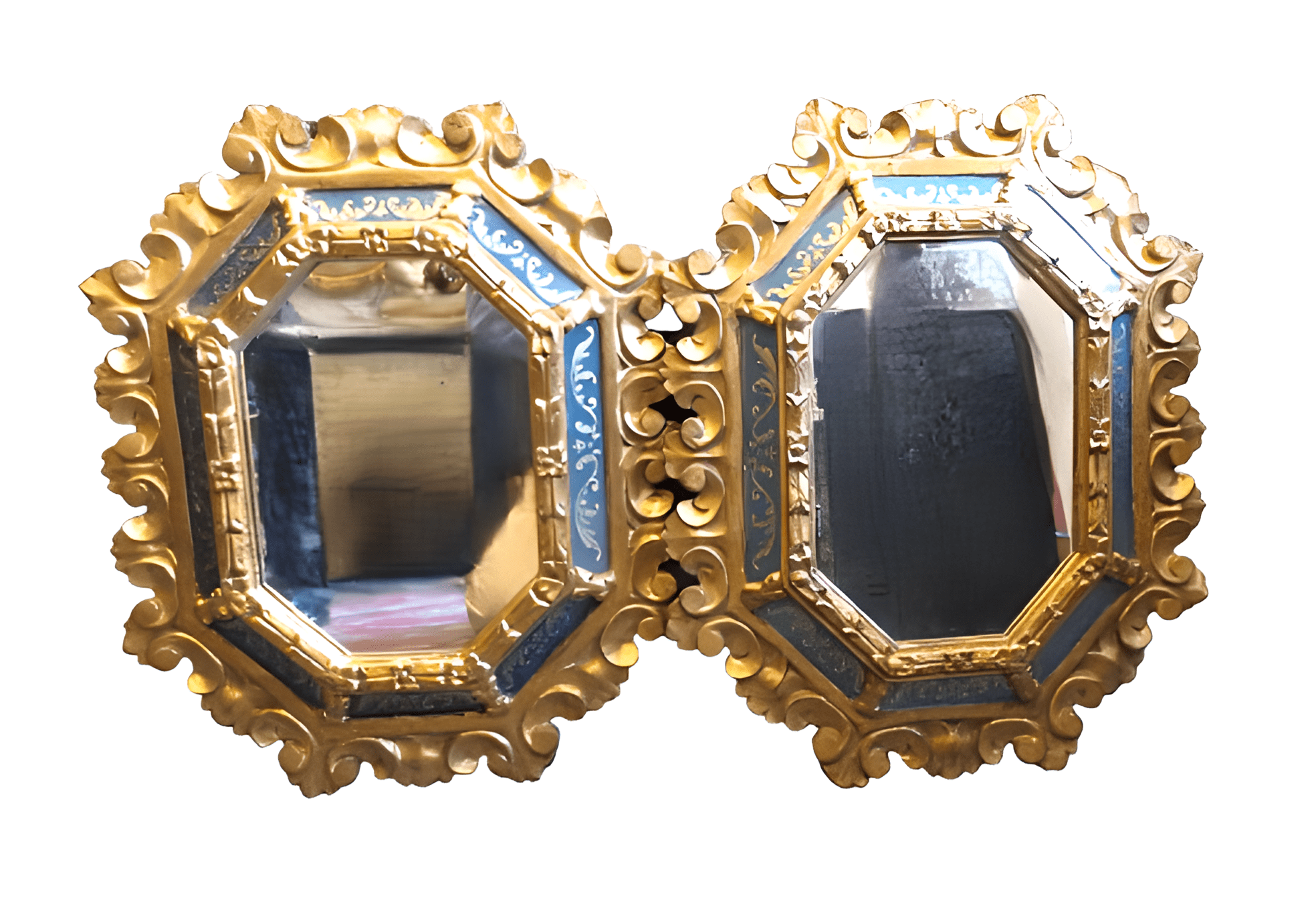 Pareja de cornucopias venecianas con cristales decorados con color y relieve en madera dorada del siglo XX.