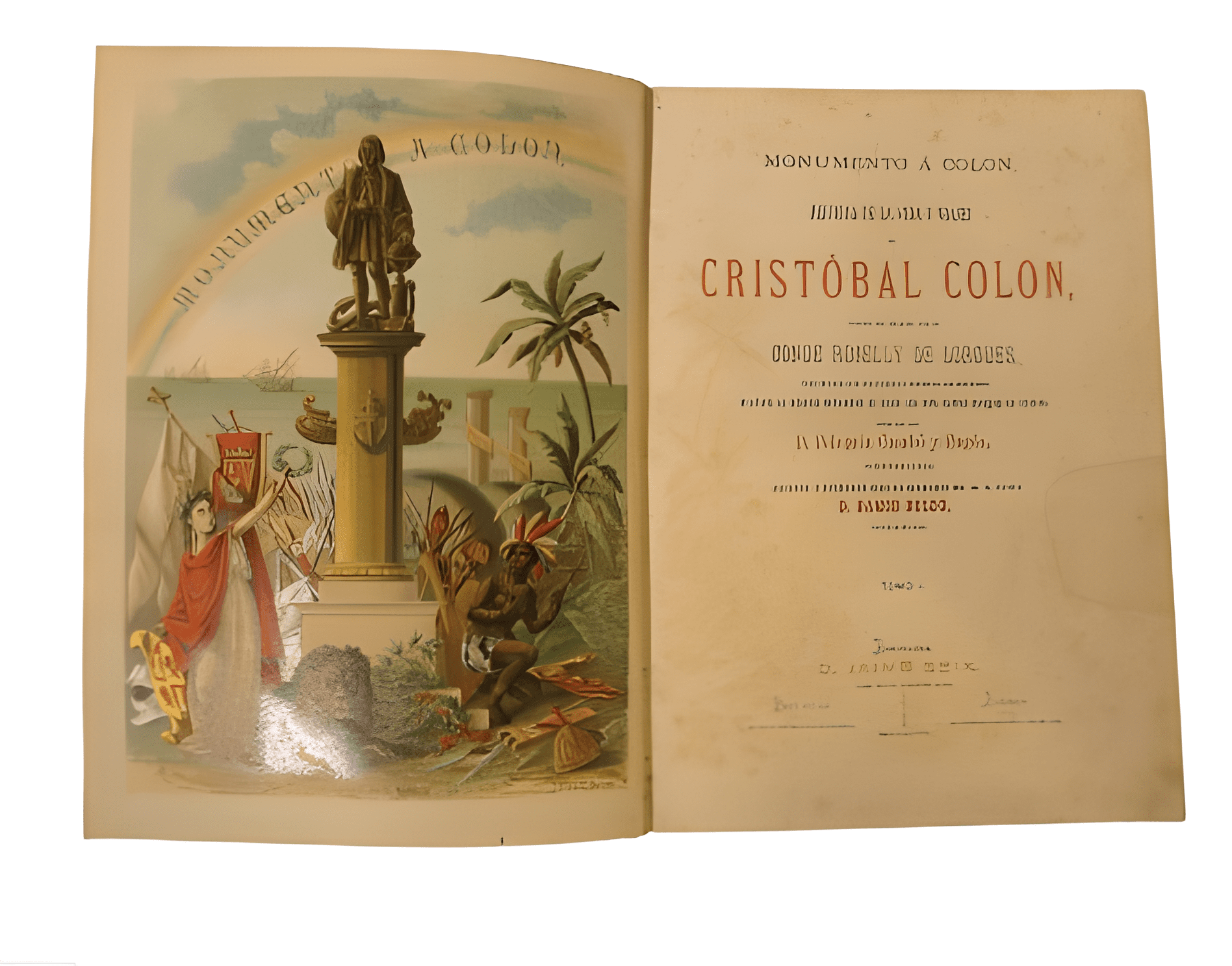 Libro compuesto por tres tomos sobre Cristóbal Colón realizado por la imprenta Jaime Seix ( Barcelona, 1878).