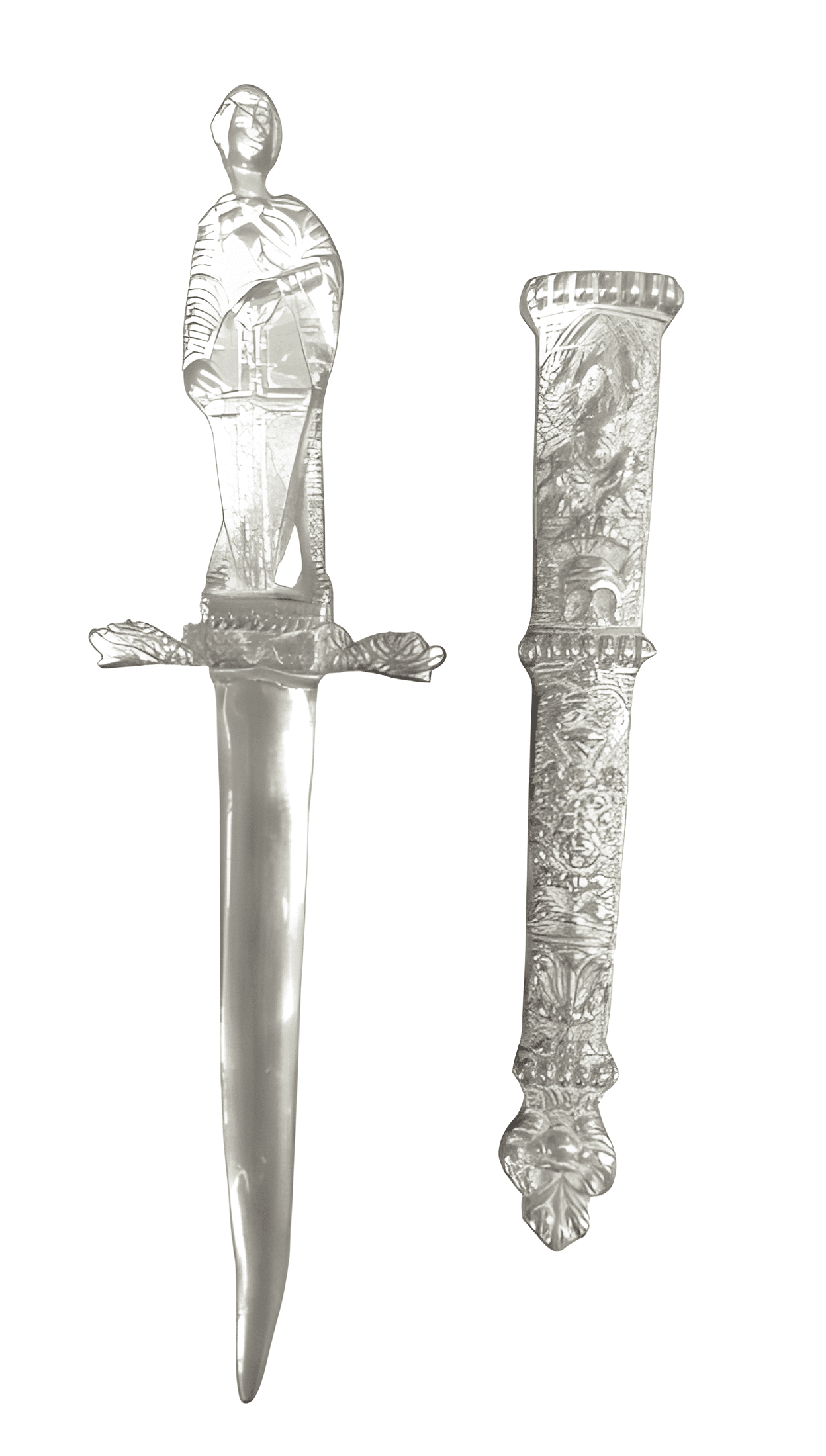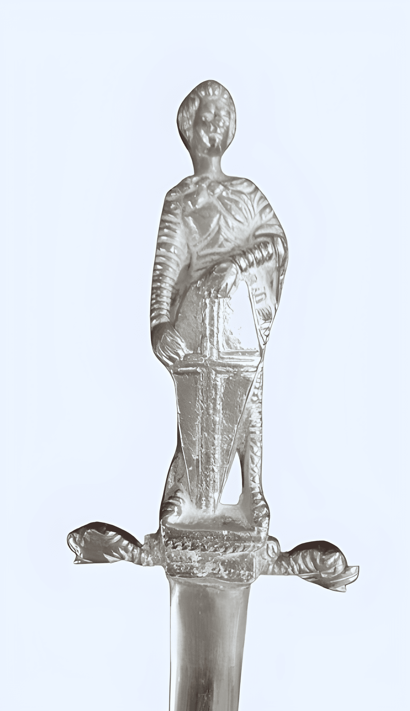 Daga realizada en bronce representando en la empuñadura a San Jorge (escultura de Donatello) del siglo XX.