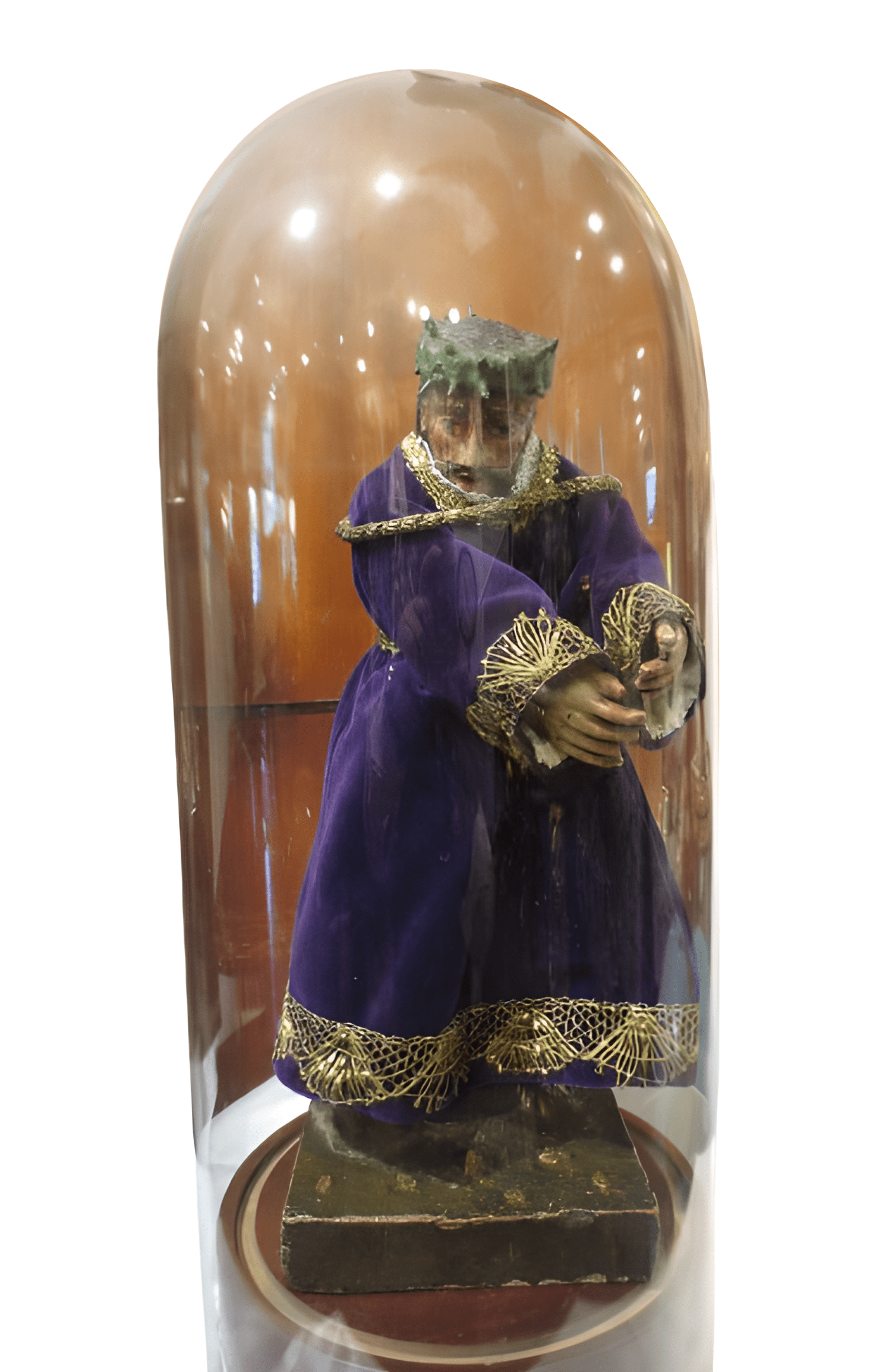 Escultuta de Ecce Homo vestido para convertirlo en el famoso Cristo de Zamora, tiene fanal, del siglo XVII.