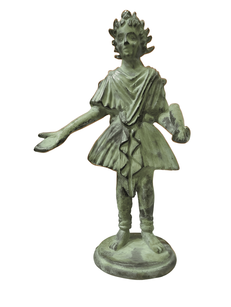 Escultura en bronce pequeña de un emperador o deidad romana, posiblemente del siglo XIX.