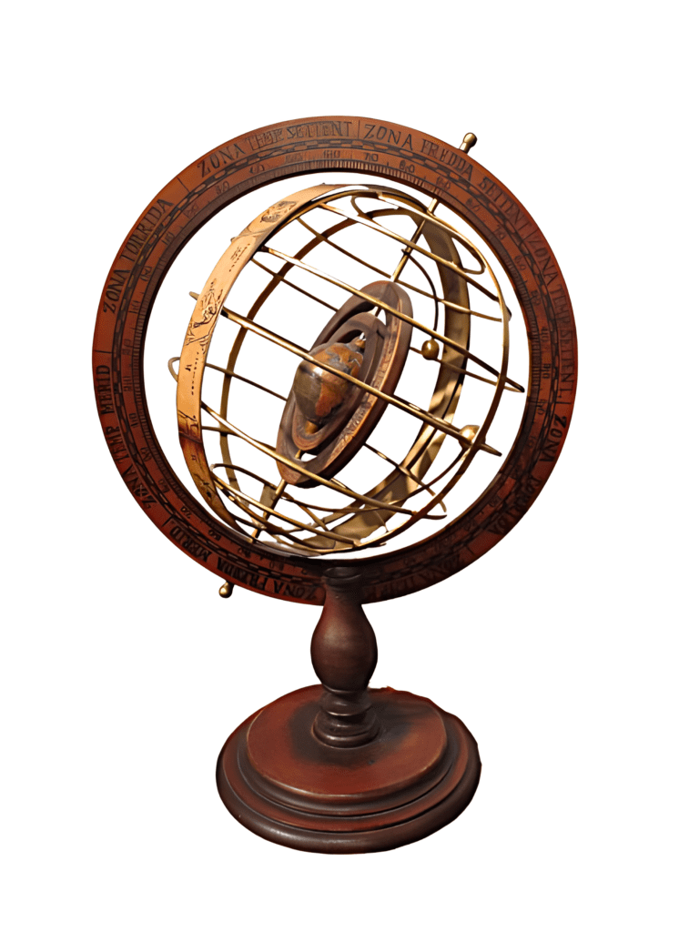 Esfera Armilar, instrumento astronómico, que representa los movimientos de los astros alrededor de la Tierra y el Sol; del siglo XX.