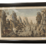 Grabado coloreado a mano que representa una bahía del lejano oriente probablemente realizado en el siglo XVIII.