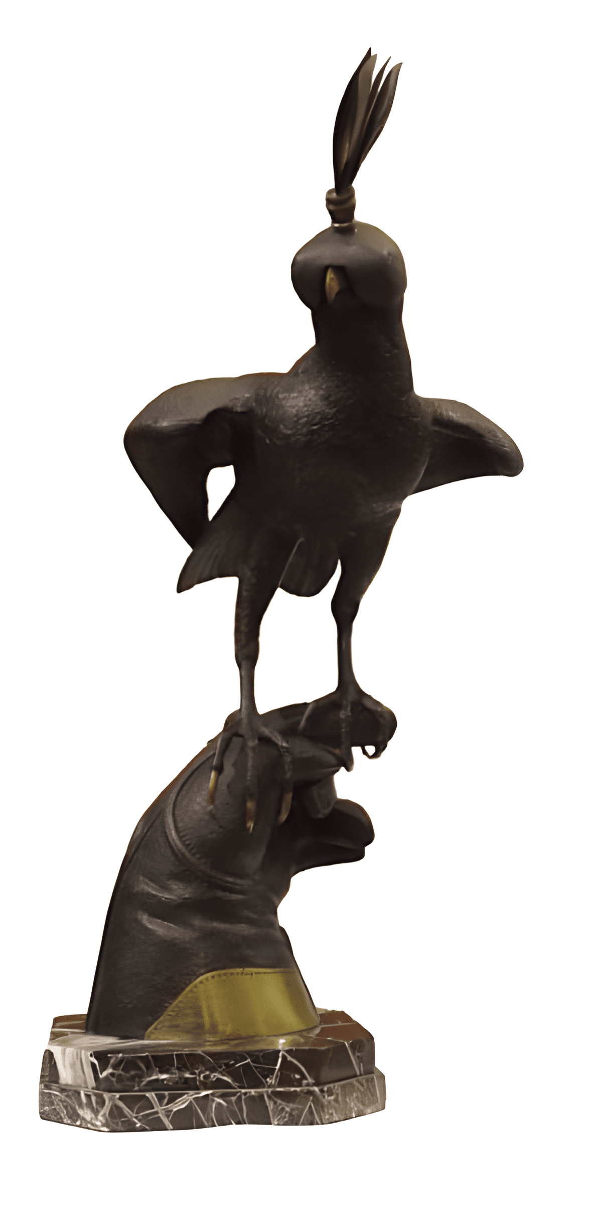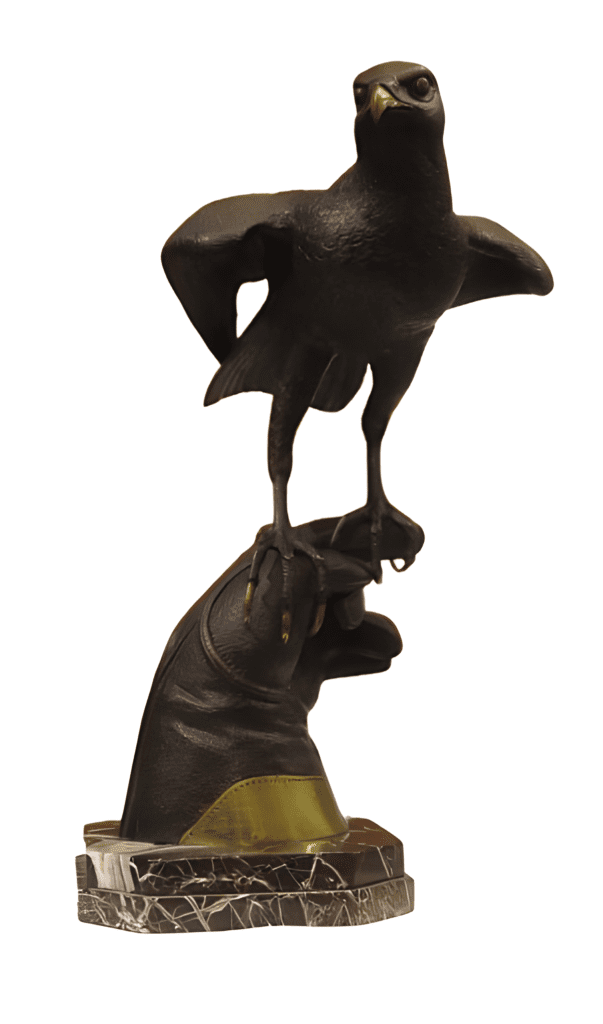 Escultura en bronce de un halcón encapuchado sobre un guante de cetrería de una serie numerada limitada (150 reproducciones) de Ignace Gallo de finales del siglo XIX y principios el siglo XX.