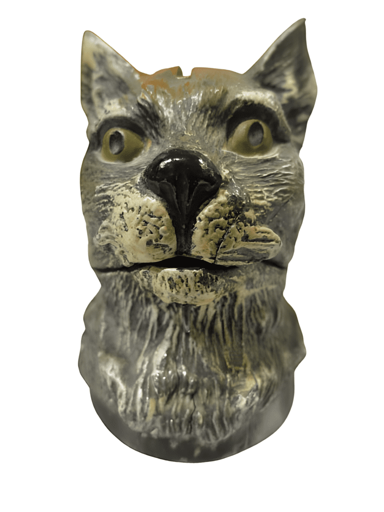 Hucha realizada en plomo policromado de Viena, representando a un gato, del siglo XIX,