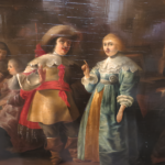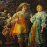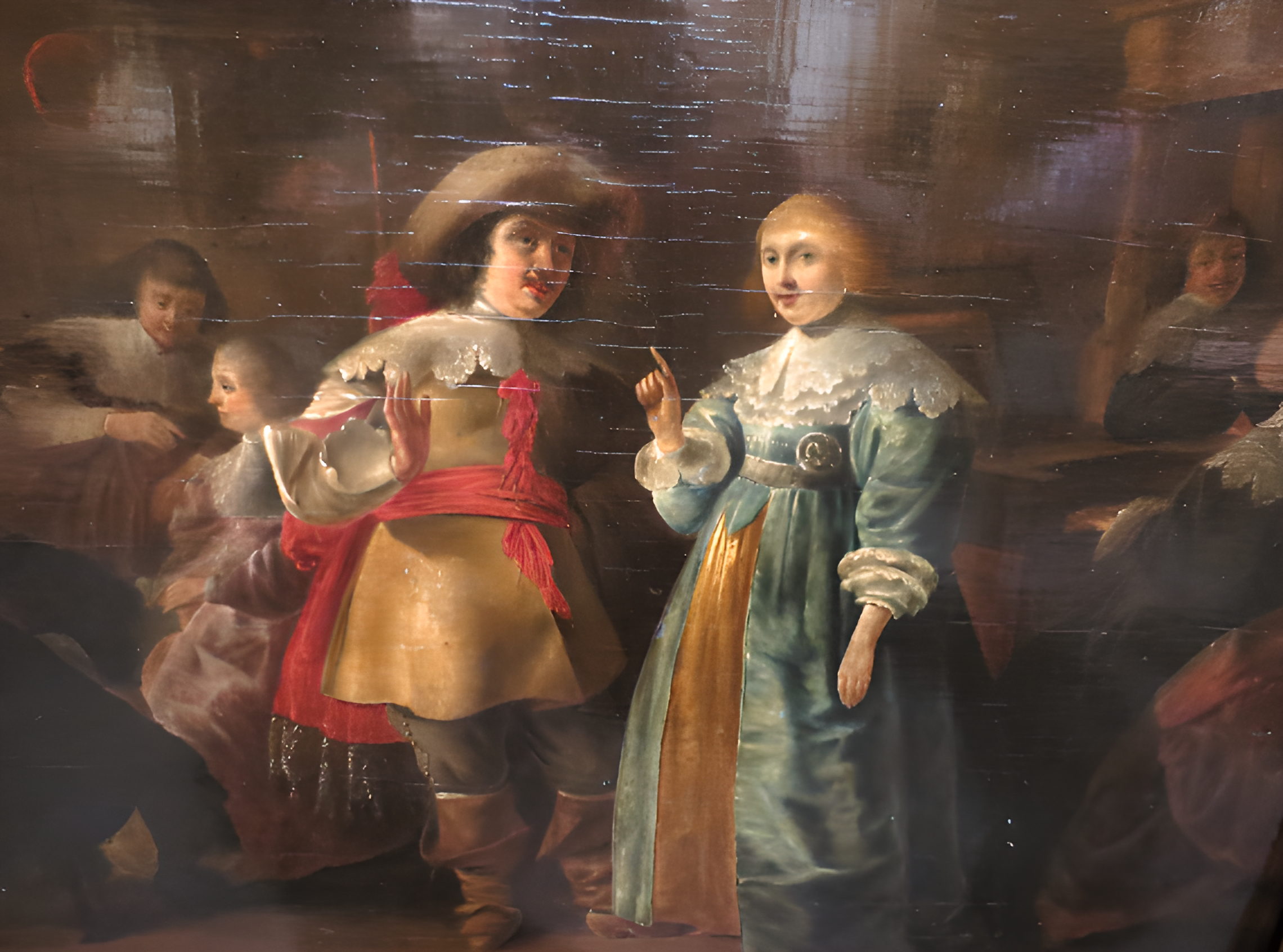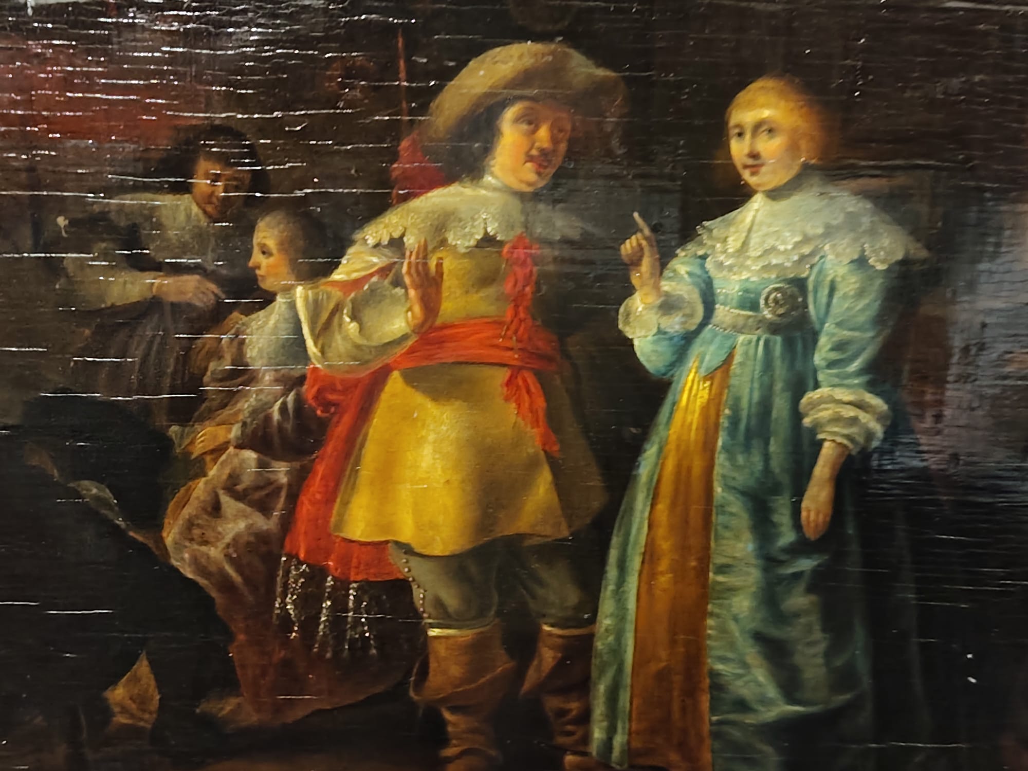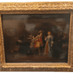 Óleo sobre tabla que representa a un hombre y a una mujer del siglo XVII en un contesto de interior de taberna, realizado por Anthoine Palamedesz (1601-1673), escuela holandesa.