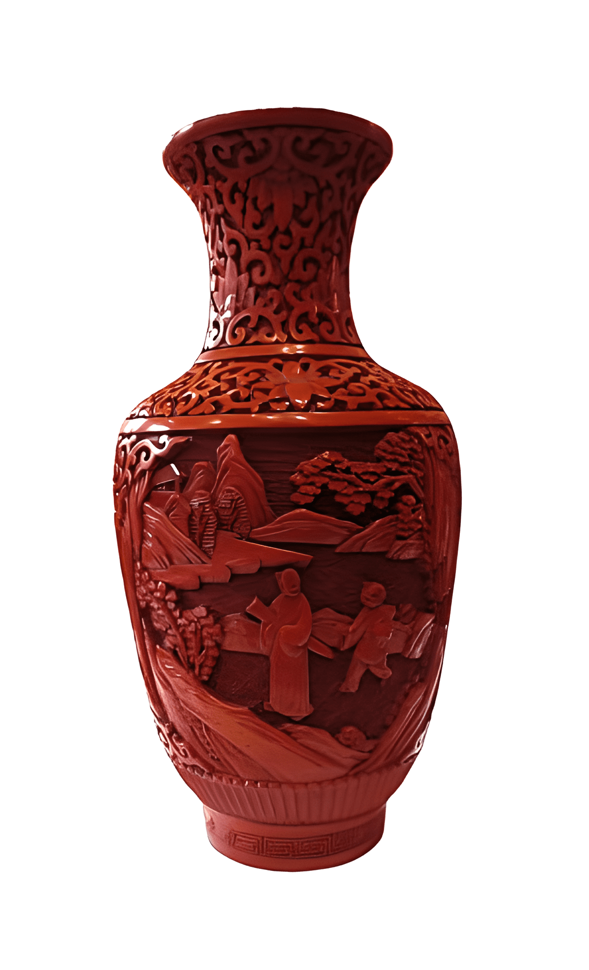 Jarrón de laca china realizado con cinabrio de finales del siglo XIX y principios del XX.