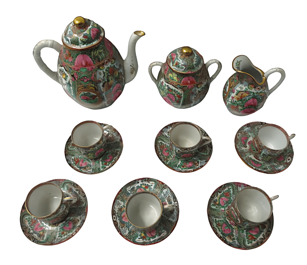 Juego de té de porcelana de Macao decorado a mano del siglo XIX.
