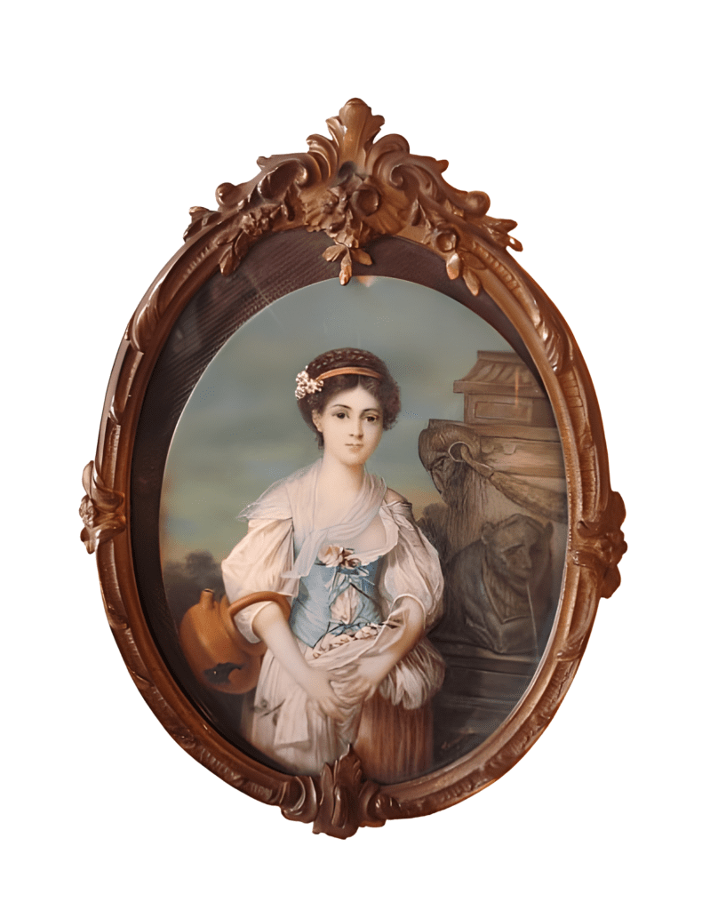 Miniatura óleo sobre marfil con marco de bronce del siglo XIX.