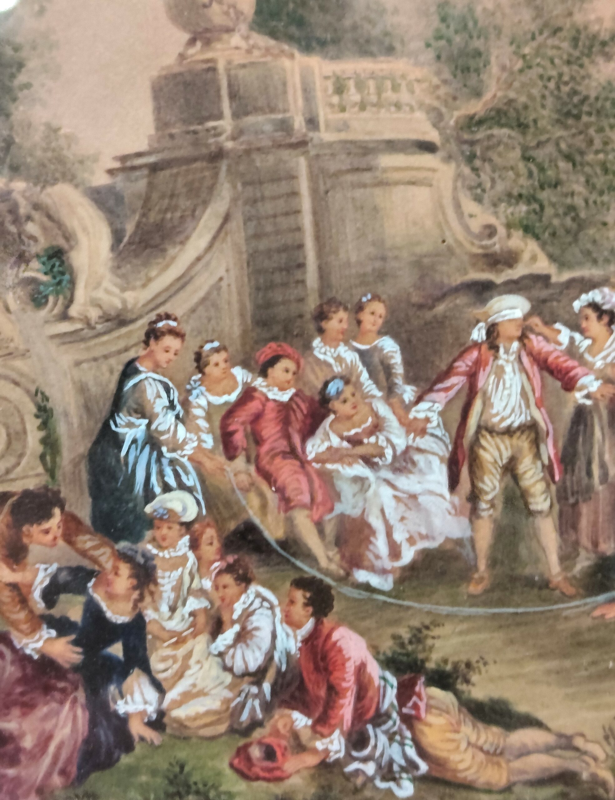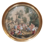 Miniatura al óleo pintada sobre piel de cordero, representando el juego de la gallinita ciega, del siglo XVIII.