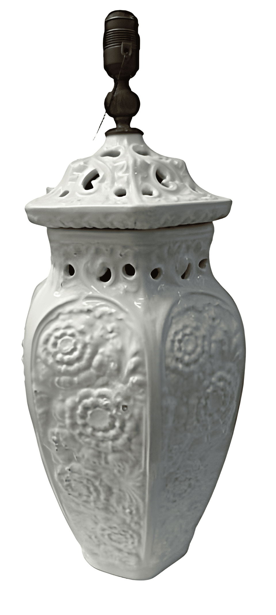 Lámpara de sobremesa realizada en cerámica con diseño oriental de finales del siglo XIX y principios del XX.
