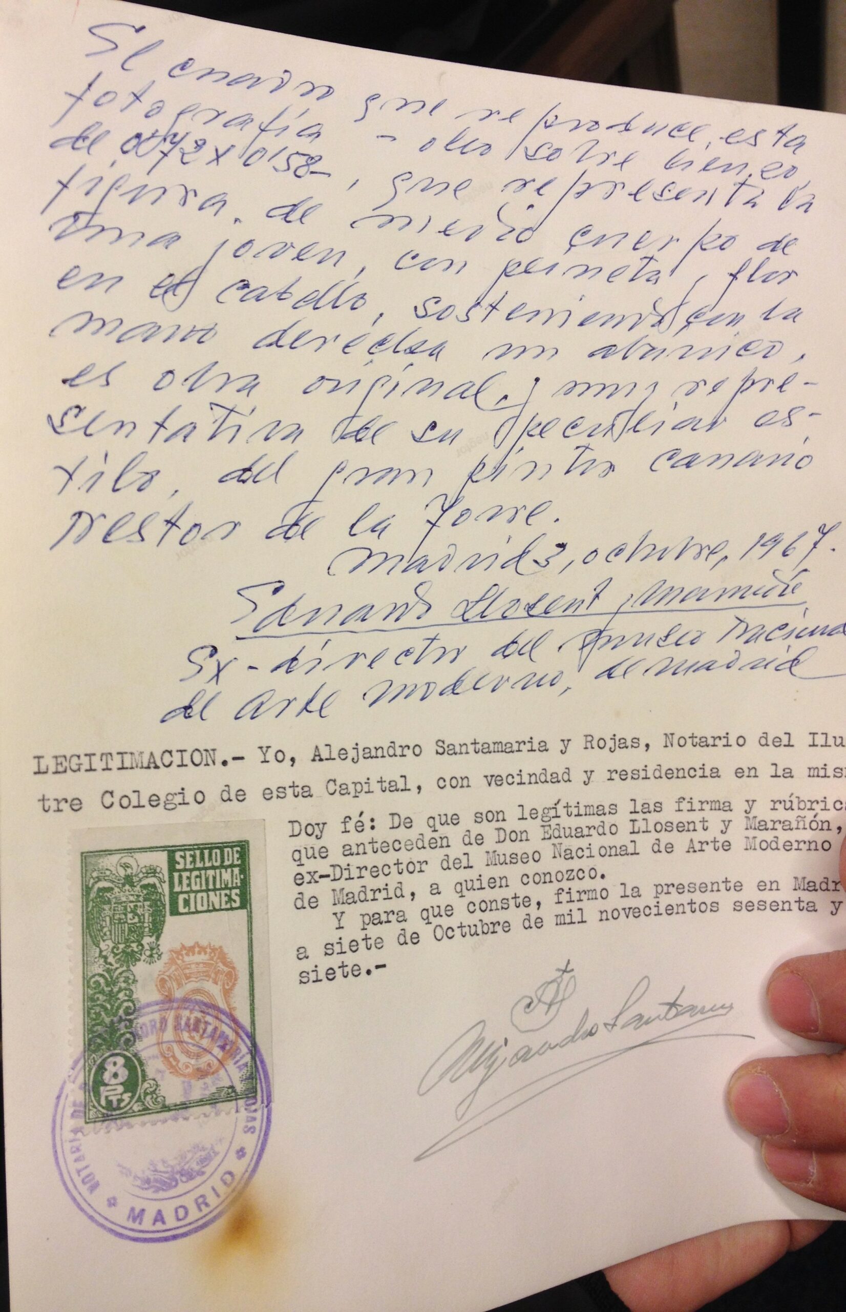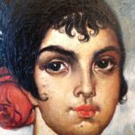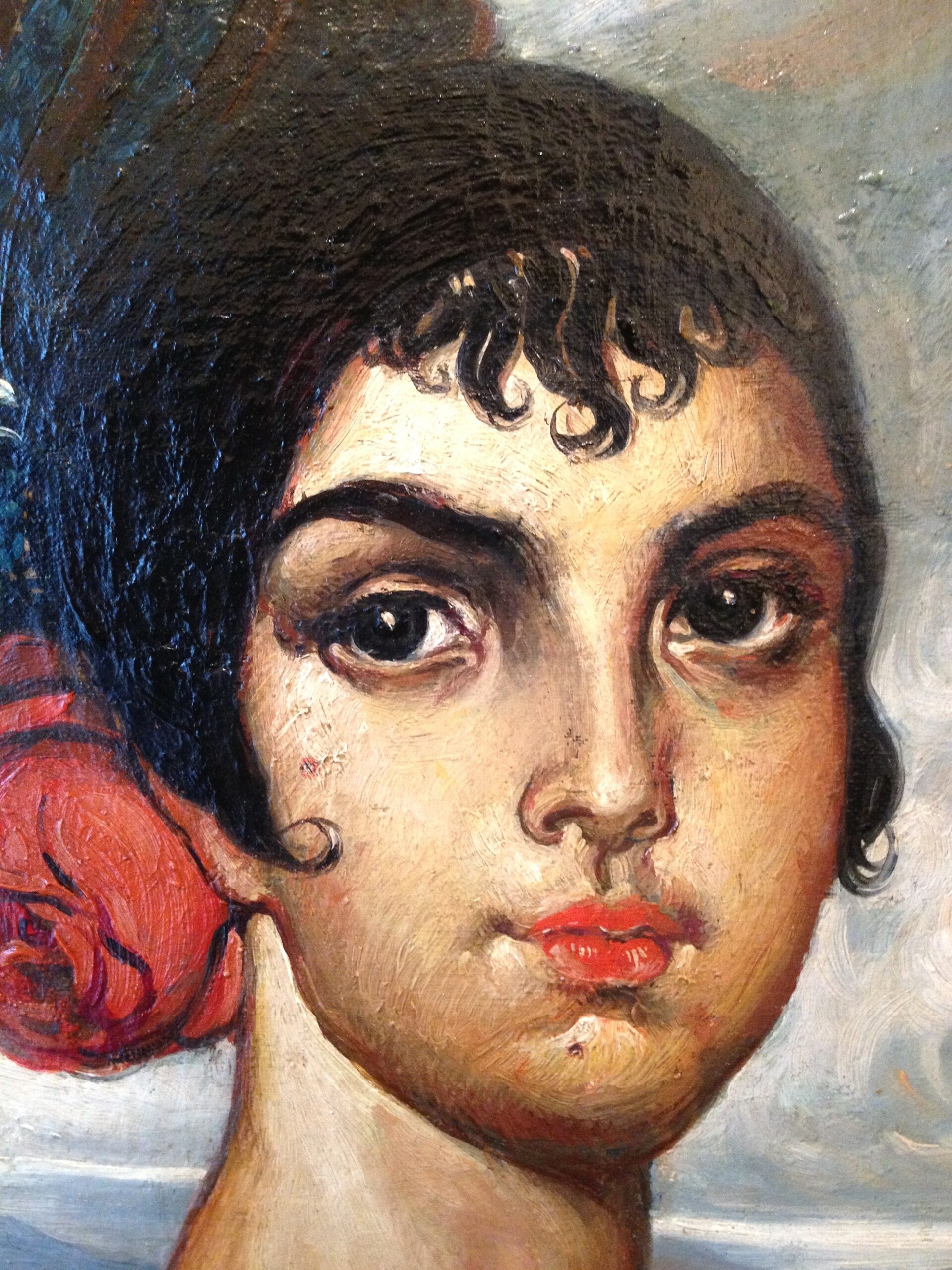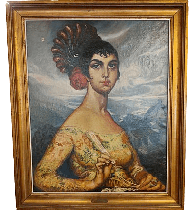 Óleo sobre lienzo que representa a una maja llevando una peineta y cuya autoría a Néstor Martín Fernández de la Torre (1887-1938) está certificada notarialmente por don Eduardo Llosent y Marañón ( ex-director del Museo Nacional de Arte Moderno) diciendo que es una obra original y representativo de dicho pintor canario.