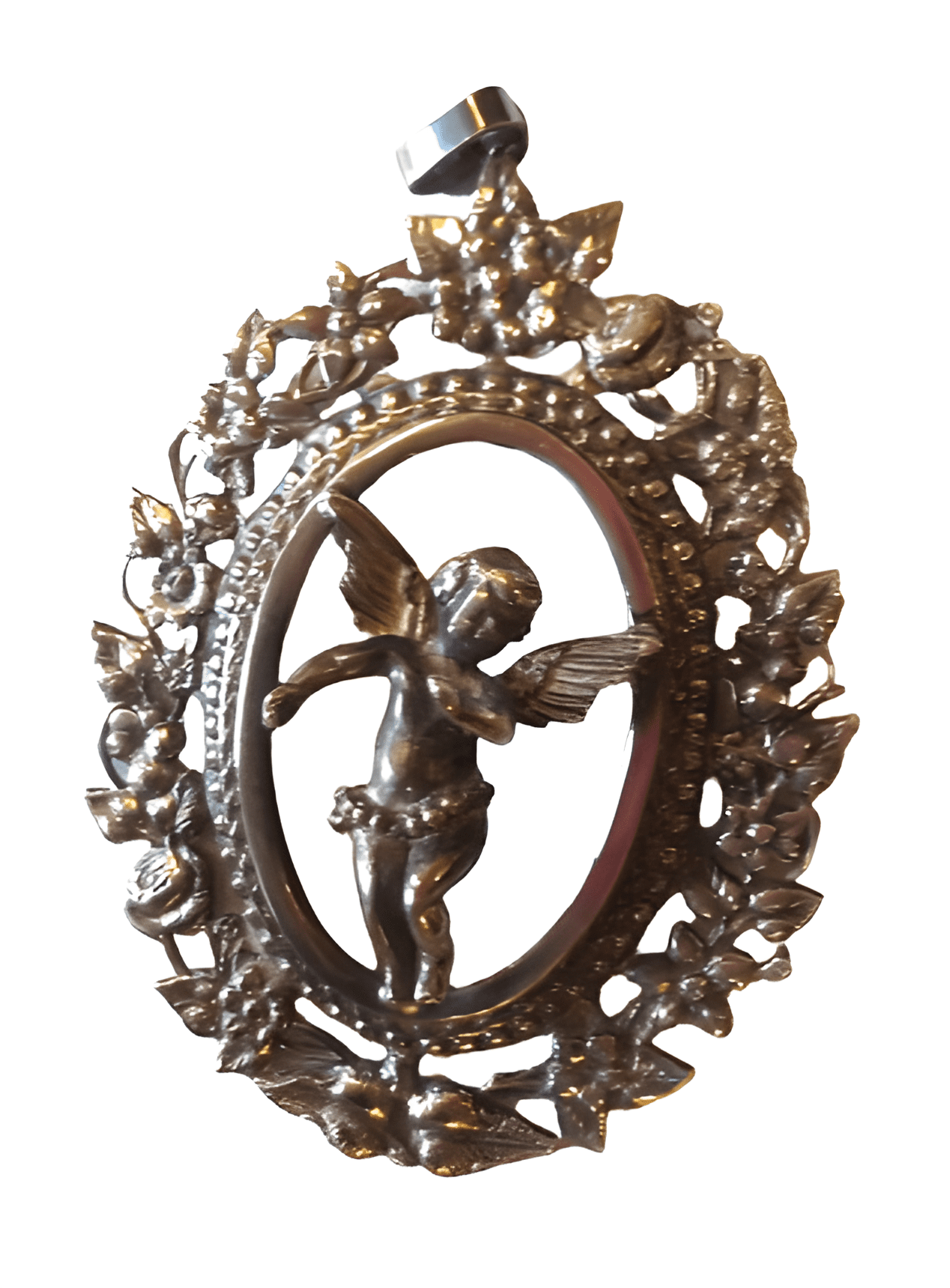 Medalla de plata de 925 milésimas, representa a cupido, del siglo XIX.