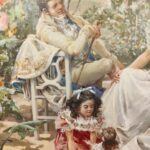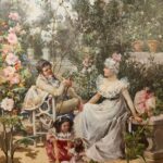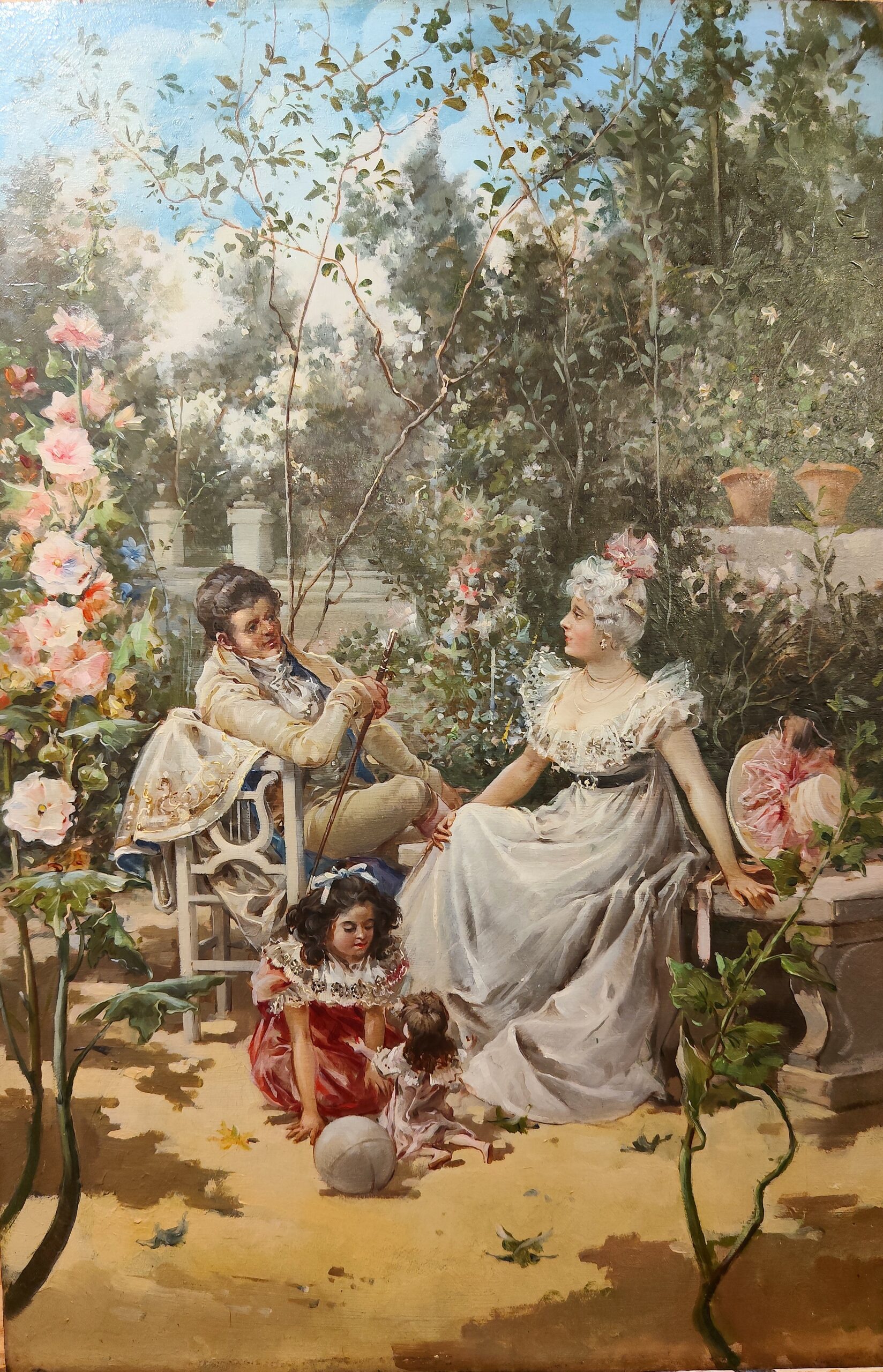 Óleo sobre tabla que representa a la familia de Eugenio Lucas Villamil realizado por él mismo ( 1858-1918).