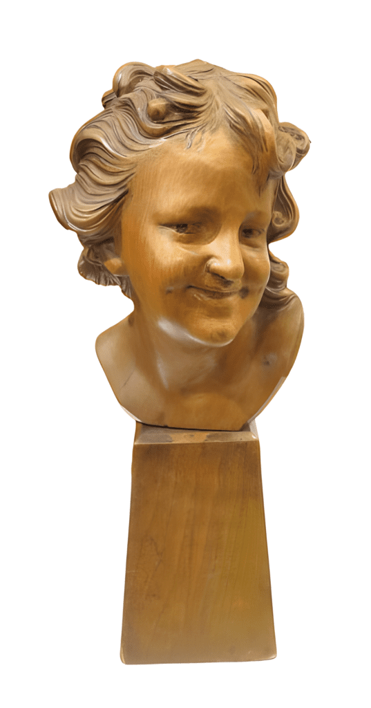 Escultura de un niño en madera, modelo del siglo XIX, atribuido a Jean-Baptiste Carpeaux (1827-1875) y taller, autor relacionado con la Ópera de París.