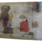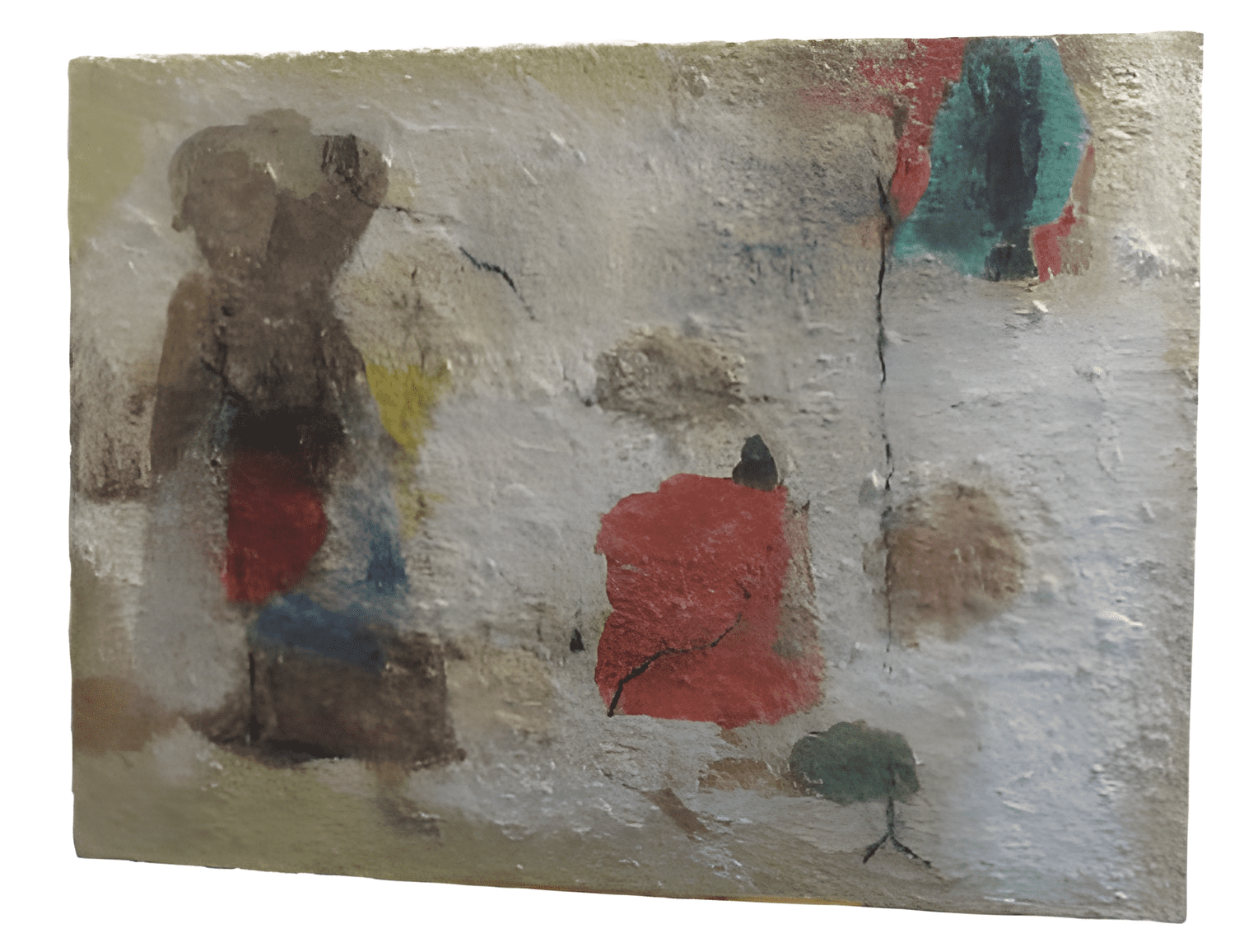 Técnica mixta de un paisaje en movimiento urbano, pintura abstracta, realizado por Jafar Kaki (1951-), pintor de origen iraní, nacionalizado español.