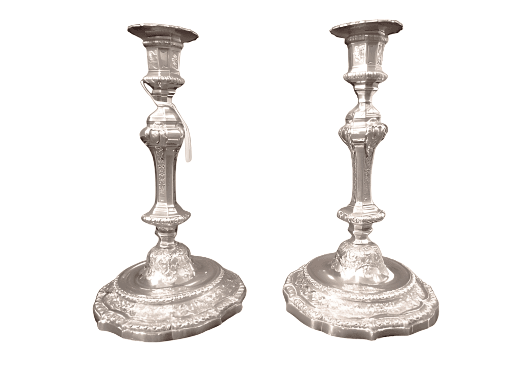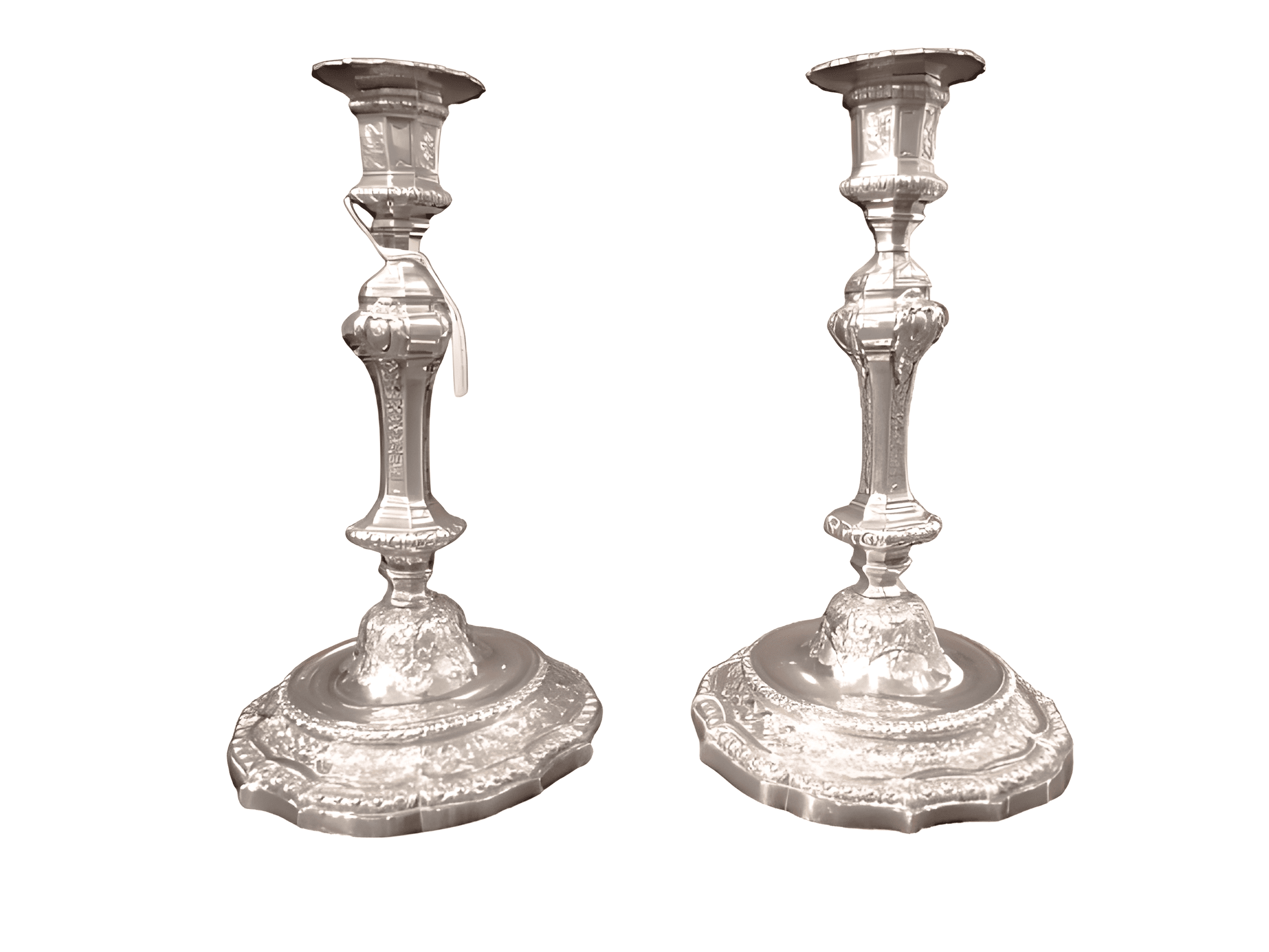 Pareja de candeleros en bronce con baño de plata del siglo XIX, época Louis-Philippe.