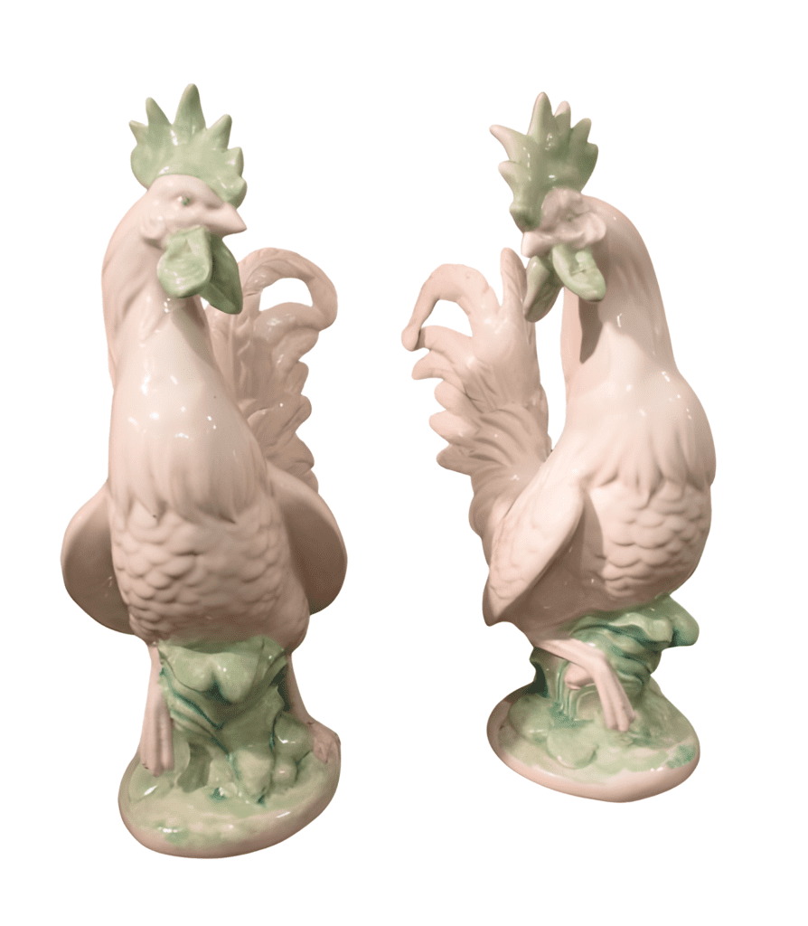 Porcelana de gallos en tonos blancos y verdes de la prestigiosa marca húngara Herend de mediados del siglo XX.