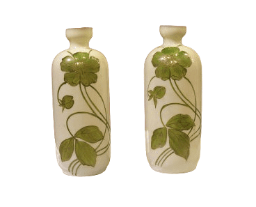 Pareja de jarrones de cristal de Murano decorados con flores verdes y oro del siglo XIX.