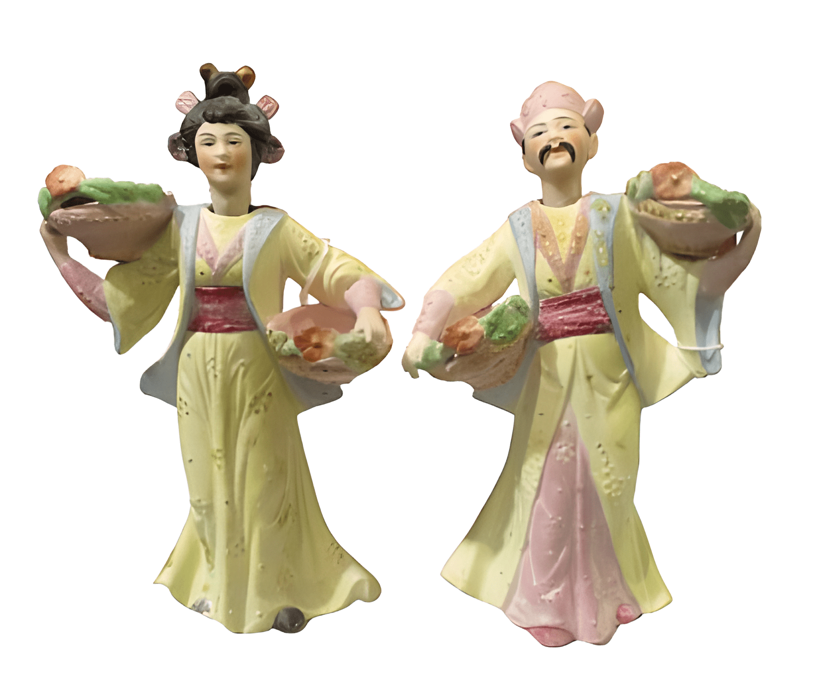 Dos figuras de porcelana biscuit, vintage, con cabezas móviles del siglo XX.