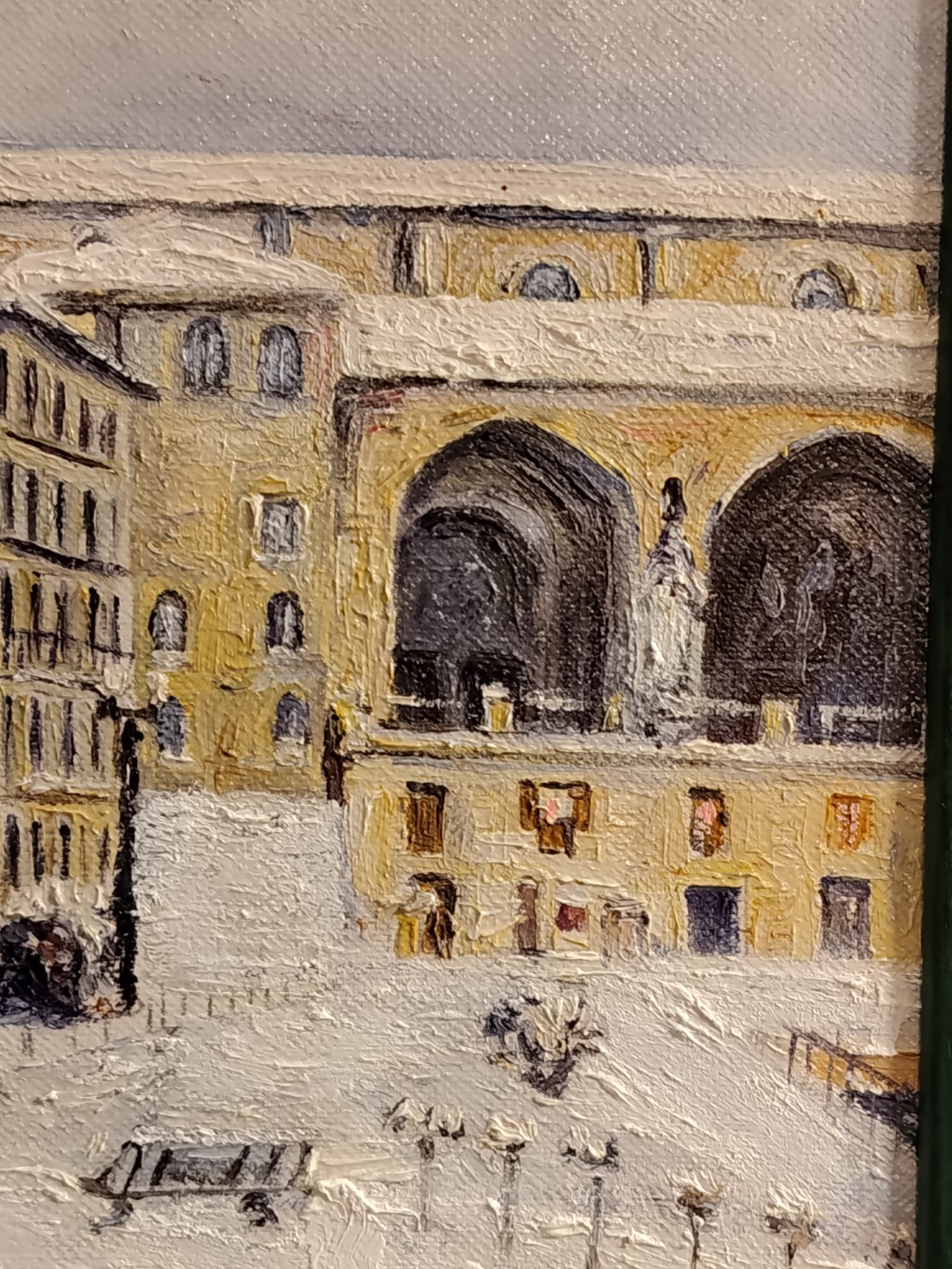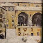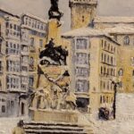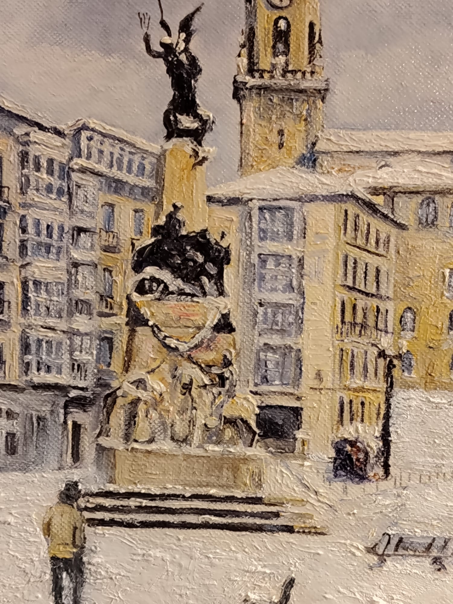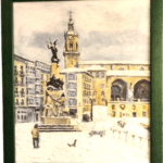 Óleo sobre lienzo que representa la plaza de la Virgen Blanca de Vitoria con nieve, atribuido a Andrés Apellaniz (1928-2005).