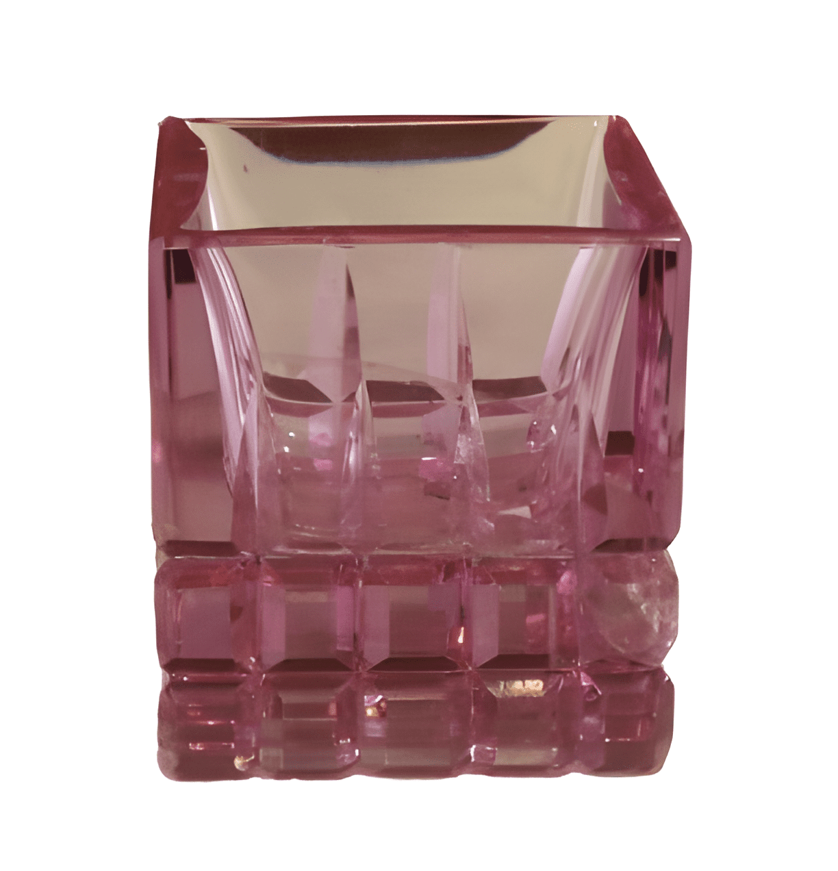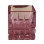 Portaobjetos de cristal de color violáceo con diseño geométrico, recuerda a Louisse Roe, posiblemente sea Bormioli Rocco del siglo XX.
