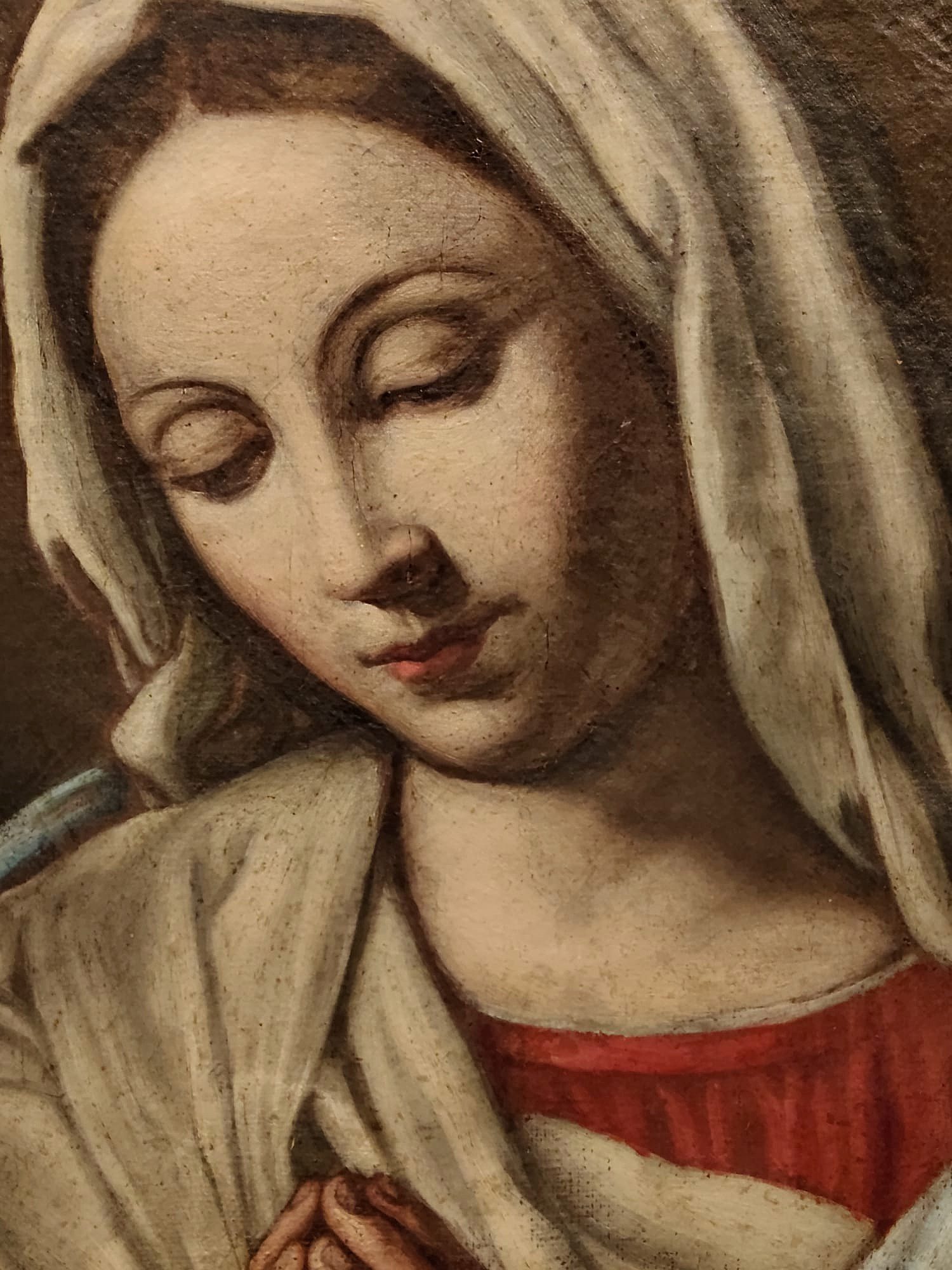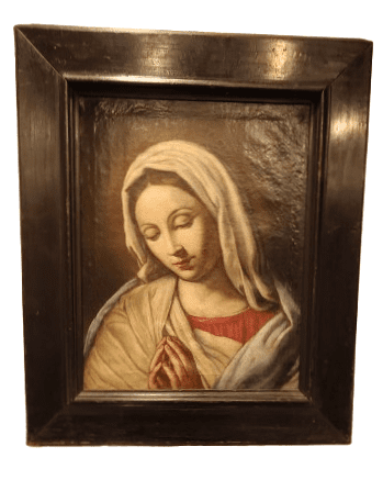 Óleo sobre lienzo que representa a la Purísima, modelo Hispano-Italiano, basado en las obras de Giovanni Battista Salvi da Sassoferrato, de finales del siglo XVII y principios del siglo XVIII.