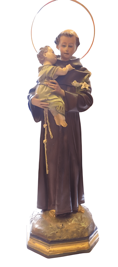 Escultura en escayola de San Antonio de Padua de la escuela de Olot del siglo XX.