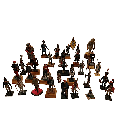 Veintinueve soldados de plomo de diferentes tamaños y de diferentes creadores, de los años 70 y 80.