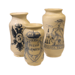 Tres tarros de farmacia del tipo albarelos del siglo XX.